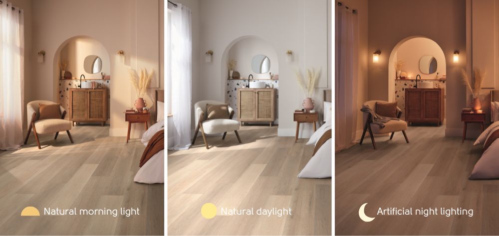 Lighting, both natural and artificial, will affect how the floor looks in your home. And in some cases, that can be quite different from how it appears under the bright glare of showroom lighting. A typical home has warmer lighting, which could affect the perception of the floor’s colours, patterns, and textures.